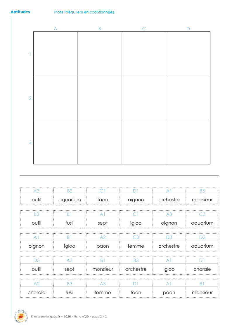 Chaque mois, 10 fiches au format PDF à télécharger pour entrainer le langage écrit ou oral : lecture, compréhension, orthographe, vocabulaire, syntaxe, discrimination phonologique, logico-mathématiques...